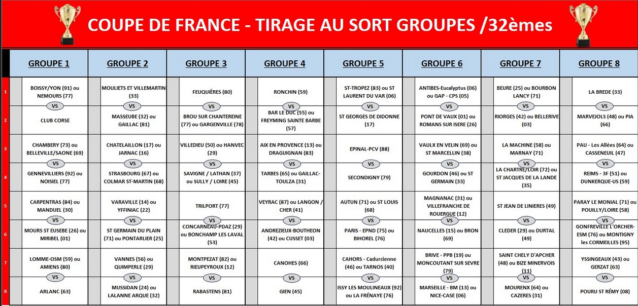 - 30/12/2024 Tirage des 32 ème de Finale de la Coupe de France